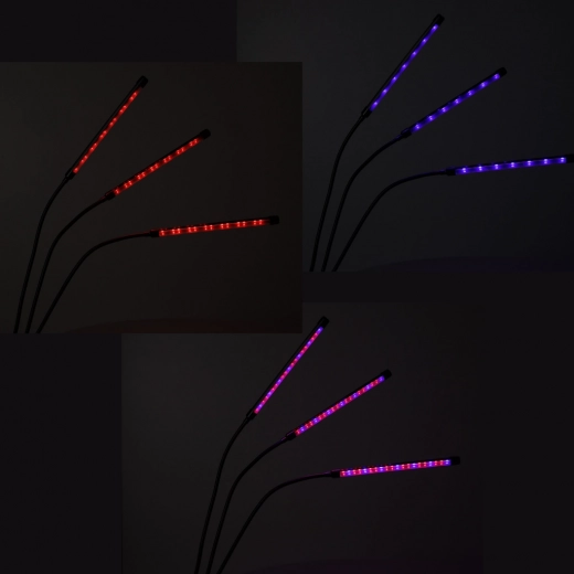 - Podešavanje svjetla: Plavo svjetlo potiče rast, crveno vegetativni ciklus, ljubičasto cjelokupni razvoj.