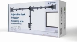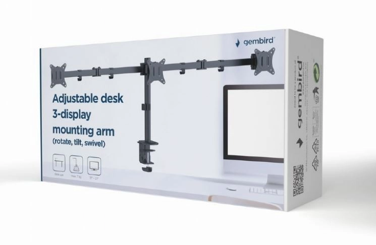 Udobno podesite svoje monitore pomoću podesivog stolnog držača za tri monitora, koji podržava monitore veličine od 17 do 27 inča i težine do 7 kg.