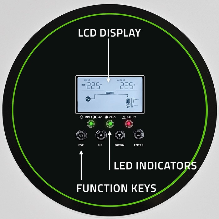 Hibridni solarni pretvarač kombinira istosmjernu i izmjeničnu struju, što omogućuje napajanje kućanskih uređaja i punjenje baterija viškom solarne energije. Ako je proizvodnja energije veća od potrošnje, višak struje može se koristiti za punjenje LiFePO4, AGM ili GEL baterija, čime se energija pohranjuje za noć ili oblačne dane. Pretvarač se također automatski prebacuje u off-grid način rada, pri čemu isporučuje energiju iz baterija.