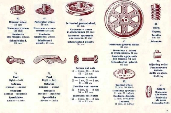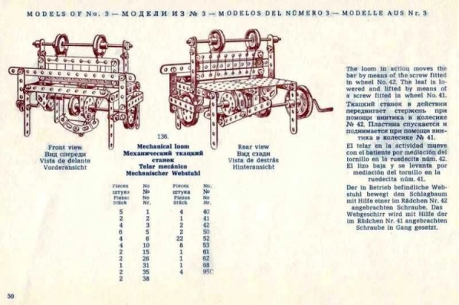Sastavni dio je velika, stilizirana u duhu vremena, knjižica s uputama od 94 stranice s ilustriranim postupcima. Upute su dopunjene izvornim tekstovima na engleskom, njemačkom, španjolskom i ruskom te su koncipirane za komplete MERKUR classic C03, C04 i C05.