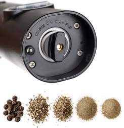 Zahvaljujući LED svjetlu, imate kontrolu nad količinom začina i pri slabom osvjetljenju. Prozirni prozorčić uvijek vam pokazuje koliko začina preostaje. Mlinci se pokreću baterijama (4× AAA po mlinicu) i jednostavni su za korištenje jednim gumbom.