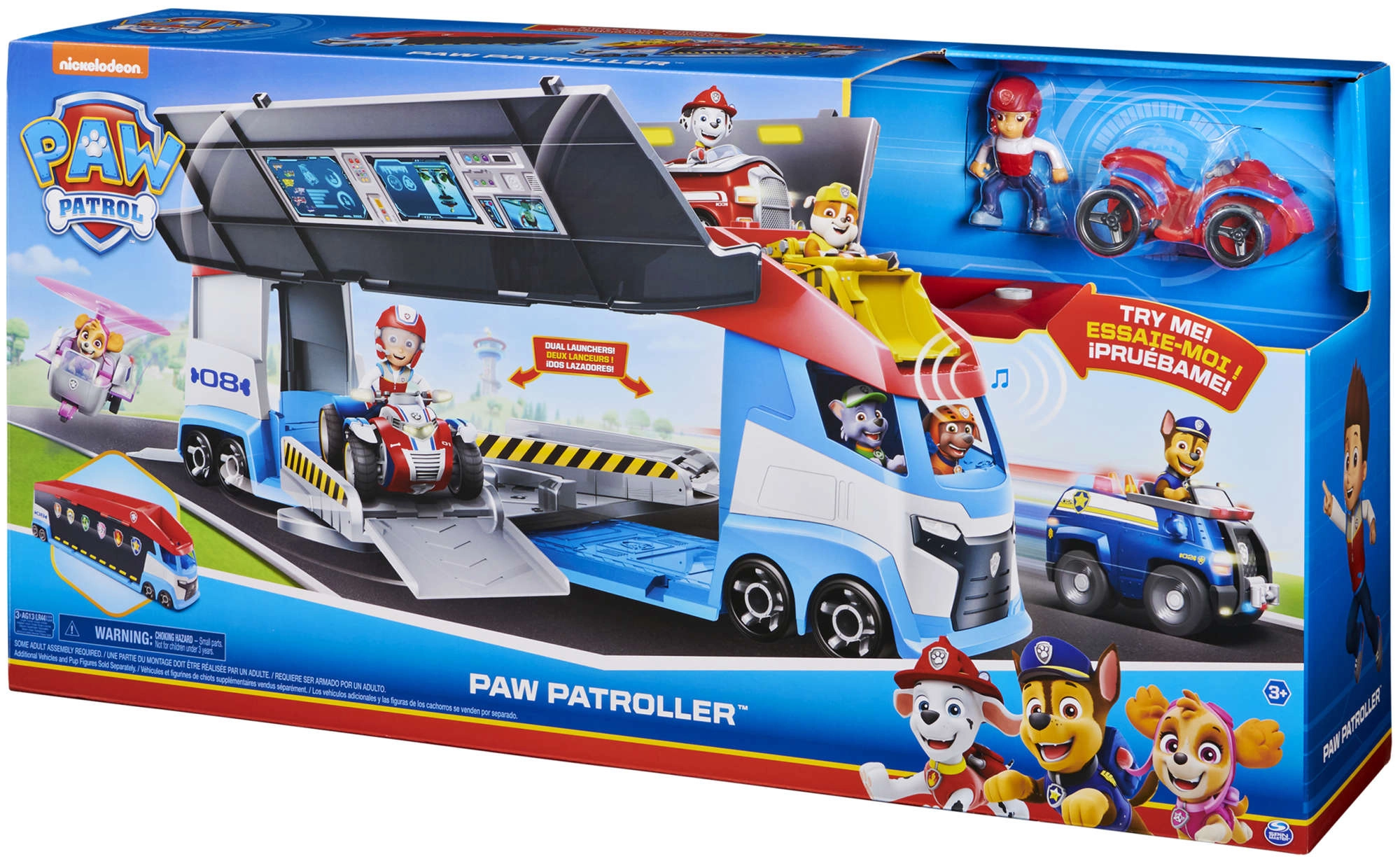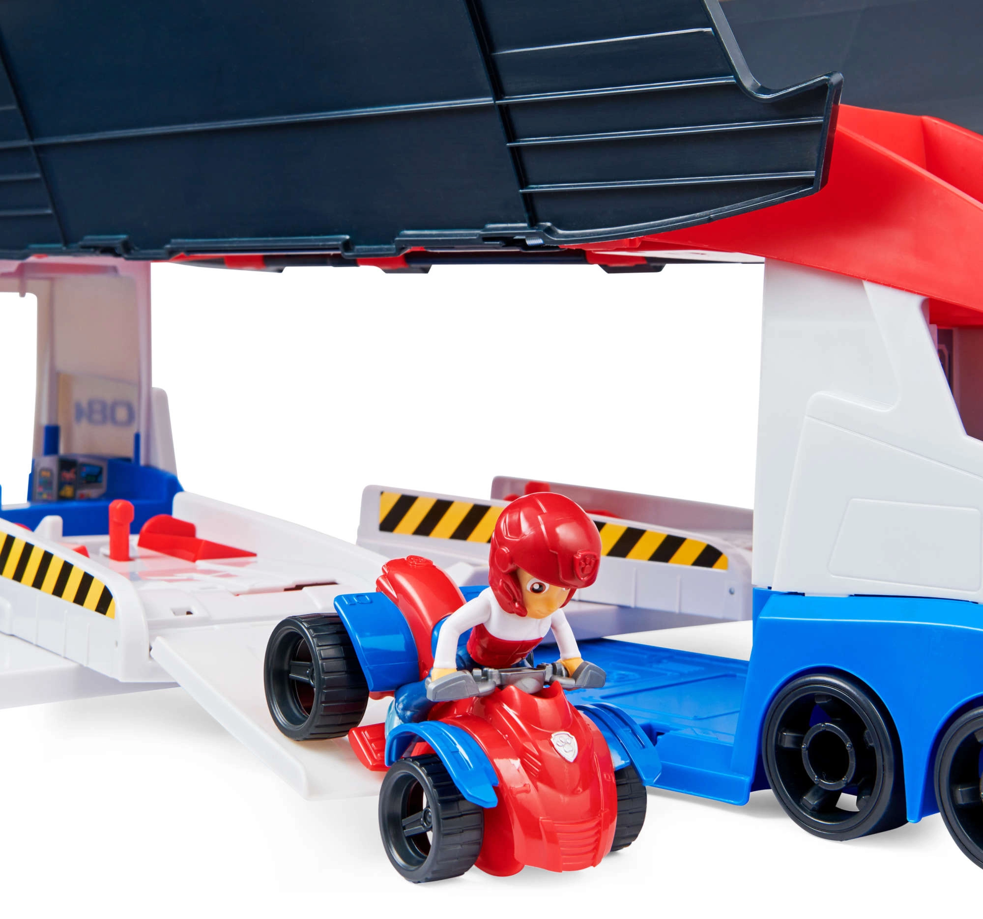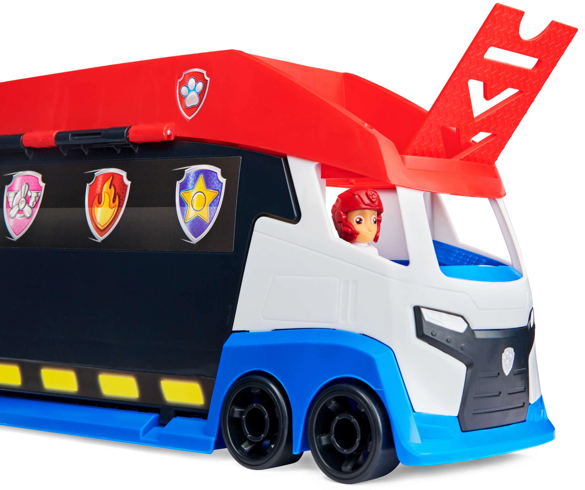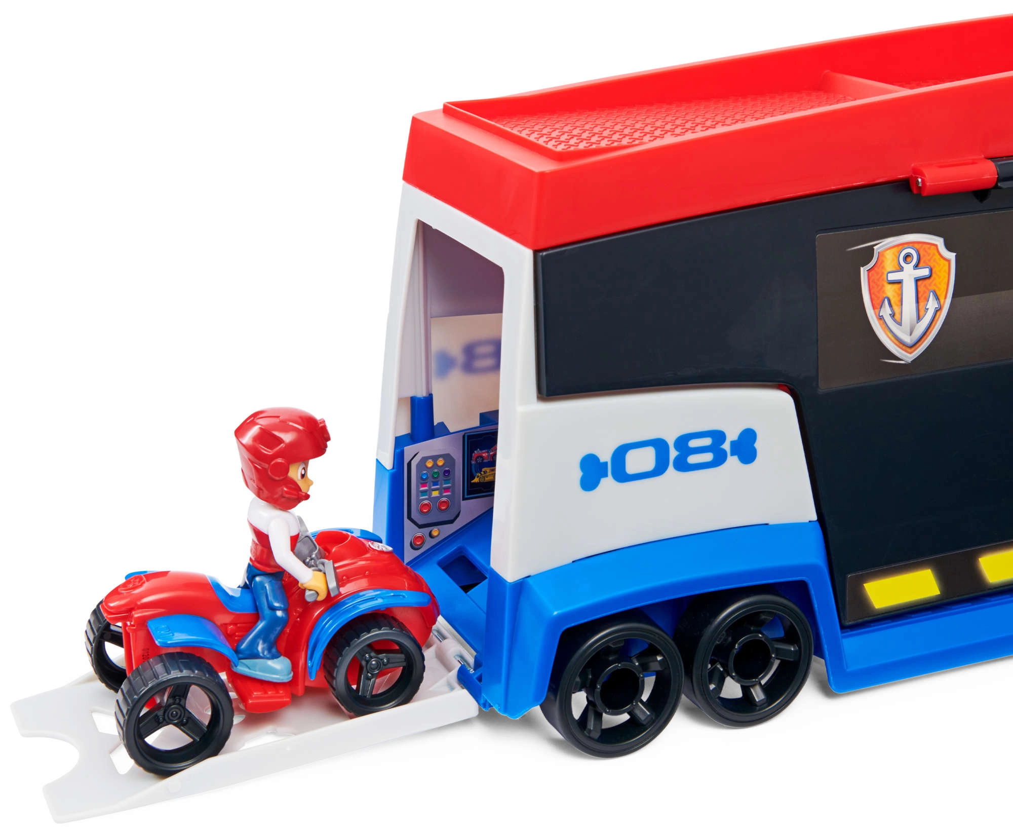 Patrolni kamion lako prevozi do 6 vozila (kompatibilno sa standardnim autićima PAW PATROL), ima 2 izbacivača za brzi start u akciju i podizna bočna vrata za nesmetano ulaženje. S priloženom figurom Rydera i njegovim četverociklom djeca odmah kreću na misiju.