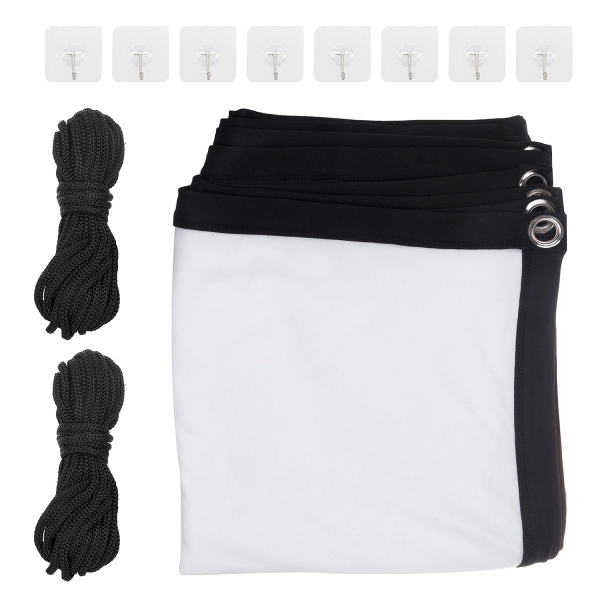 Sadrži samoljepljive kukice i uzice za brzu i jednostavnu instalaciju. Idealno za dom, ured, školu i događaje na otvorenom.