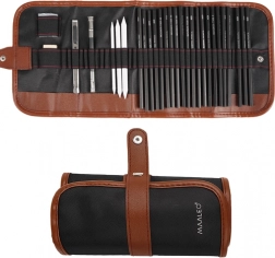 U specifikaciji ćete pronaći: 18 olovaka za crtanje različitih tvrdoća, 3 olovke od ugljena, produživač za olovke, 3 papirnate štapiće za blendanje, gumicu, papirnati nožić i stilsku crnu etuiju.