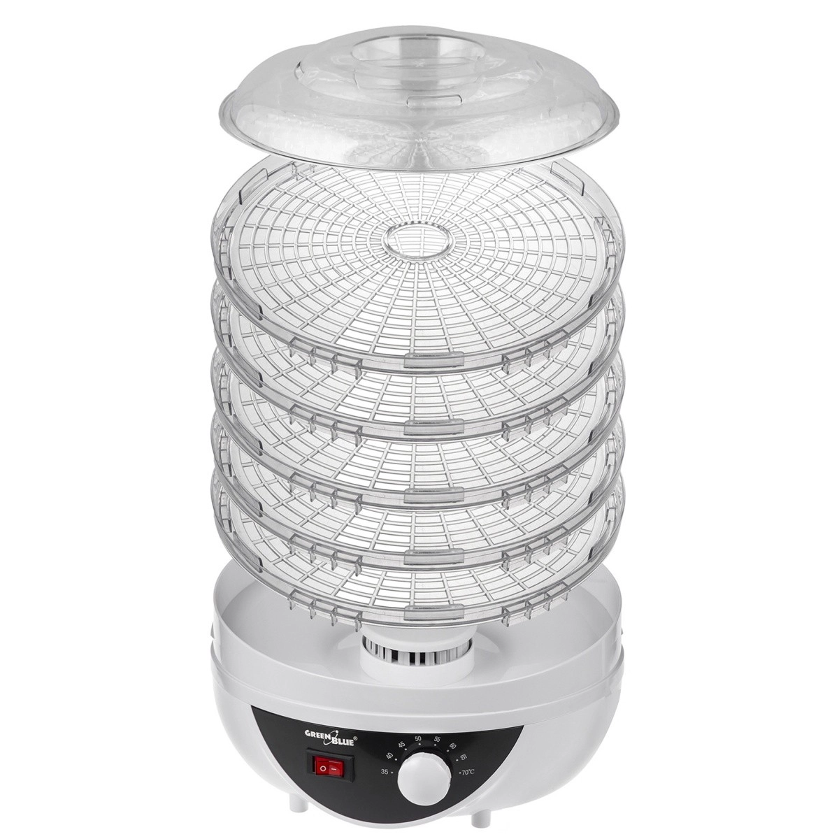 Dehidrator ima pet prozirnih i lako sklopivih pladnjeva koji omogućuju učinkovito sušenje različitih vrsta namirnica istovremeno.