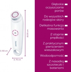 Dubinsko čišćenje za baršunastu kožu: Električna četkica za lice Beurer pruža nježno, ali učinkovito čišćenje te istodobno potiče cirkulaciju. Redovitom upotrebom koža izgleda čišće i blistavije.