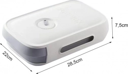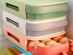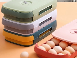 Elegancija i funkcionalnost spajaju se u ovom kompaktnom i modularnom organizatoru za jaja. Zahvaljujući glatkoj izvlačnoj ladici, pristup jajima je brz i praktičan. Plošno, stogivo poklopac štedi prostor, a praktični bočni prozor omogućuje kontrolu količine jaja.