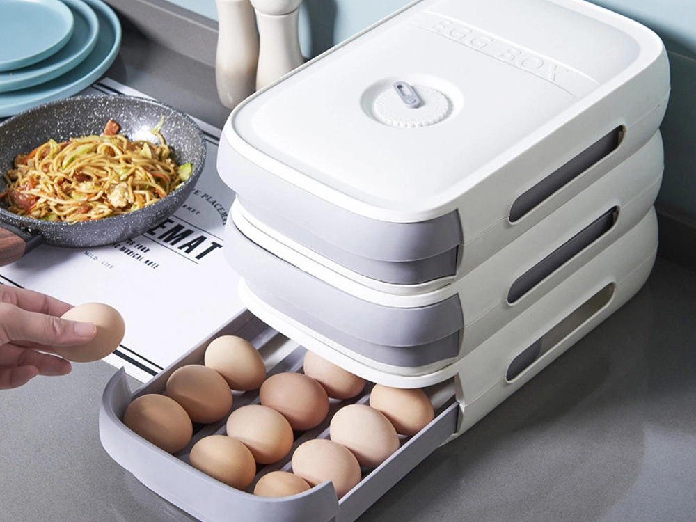 Ovaj stilski i izdržljiv plastični box ističe se ne samo funkcionalnošću, već i estetikom koja se uklapa u svaku modernu kuhinju. Omogućuje sigurno i organizirano slaganje jaja, čak i izvan hladnjaka, primjerice za doručke u hotelu.