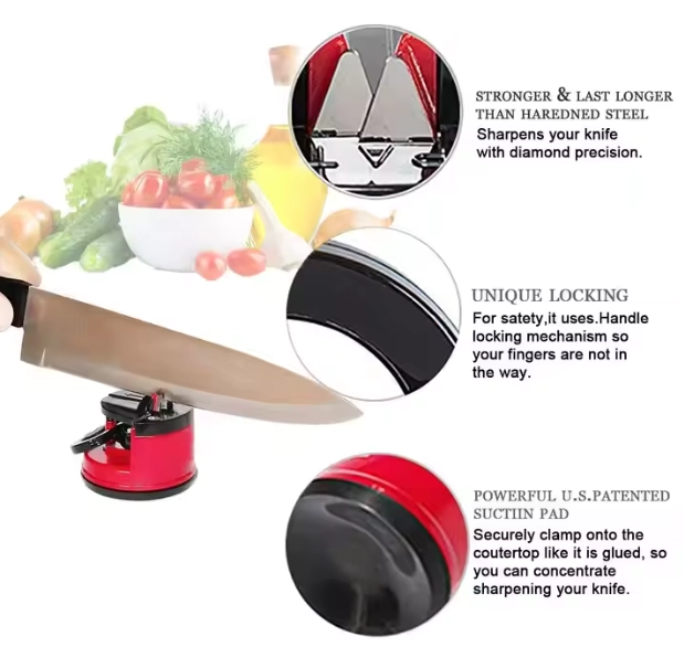 Oštrač je opremljen oštrim volframovim karbidom za brzo i precizno oštrenje noževa, škara i drugih jednostavnih alata. Njegova kompaktna veličina idealna je za svaku ladicu, a također je lagan i izdržljiv, što ga čini prikladnim za korištenje na putovanjima, poput kampiranja, ribolova ili rada u vrtu.