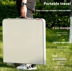 Sklopiva konstrukcija stola i stolica omogućuje kompaktno spremanje kao zgodan kovčeg s ručkom, što olakšava prijenos i skladištenje. Posebno je praktično tijekom putovanja kada je važan svaki centimetar prostora u prtljažniku.