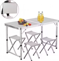 Set sadrži lagani, a istovremeno čvrsti stol i četiri udobna stolca, pogodna za korištenje na kampiranju, u vikendici, u vrtu, na balkonu ili terasi. Moderan dizajn s bijelom pločom i srebrnim aluminijskim okvirom savršeno se uklapa u bilo koje okruženje, od prirode do uređenog prostora doma. Set je ne samo jednostavniji za organizaciju vanjskog odmora, već i štedi prostor – nakon sklapanja lako se može pohraniti u ormar, garažu ili ispod kreveta.