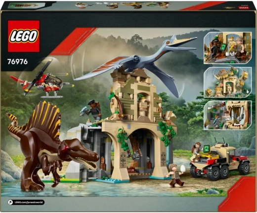 Doživite filmski nadahnutu akciju u džungli: drevni hram s vodopadom skriva gnijezdo s jajima, tajne prolaze i zamku koja se aktivira lancem. Pokretni Spinosaurus (noge, šape, rep, glava i čeljust) i veličanstveni Quetzalcoatlus (krila i čeljust) dodaju realistične scene potjere i spašavanja.