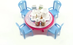 Ovaj set namještaja za lutke unosi u igru lijepi stolić sa stolicama i sitnim dodacima. Zahvaljujući kompaktnoj veličini od 12 cm savršeno pristaje manjim lutkama i kućicama. Lagana plastična izrada je izdržljiva i jednostavna za održavanje.