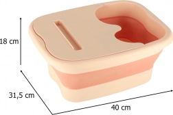 Ova masažna posuda za stopala je izvrsno rješenje za one koji traže udoban način opuštanja nakon dugog dana. Izrađena od kvalitetne plastike u elegantnim bež i losos tonovima, nudi ne samo izvrstan izgled nego i praktičnu funkcionalnost.