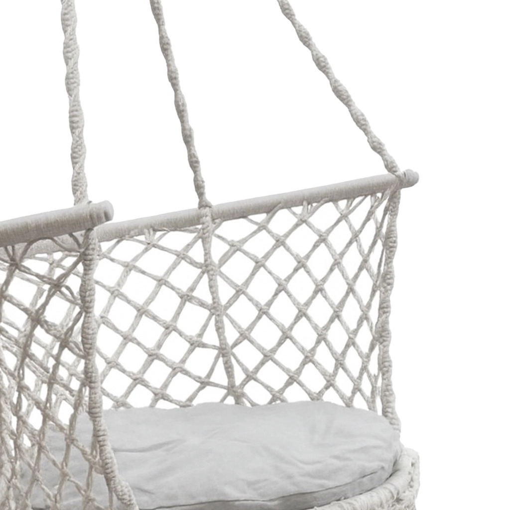 Sivo viseće sjedište s konstrukcijom u obliku gnijezda pretvorit će vaš vrtni kutak u mirno mjesto za opuštanje. Zahvaljujući jastuku koji je dio paketa, možete udobno nasloniti leđa na metalni obruč. Ljuljačka je stabilna i omogućava sjedenje i izravno i udobno u turskom sjedu.