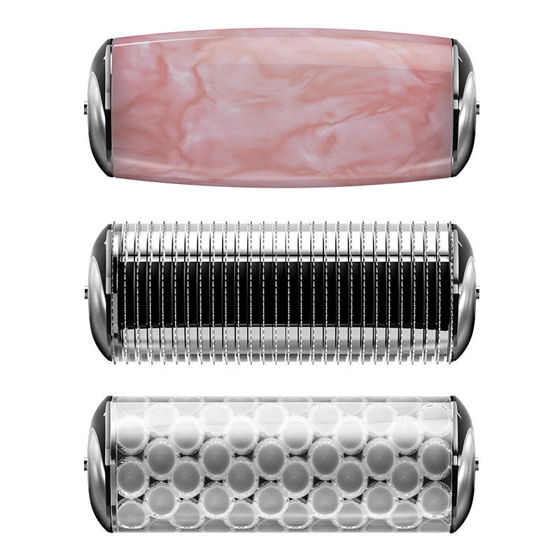 Zahvaljujući promišljenom dizajnu valjak je siguran i učinkovit. Izrađen je od dermatološki testiranog silikona i omogućuje jednostavno magnetsko punjenje. Tri zamjenjive glave – igličasta, kvarcna i rashladna – donose različite mogućnosti njege kože.