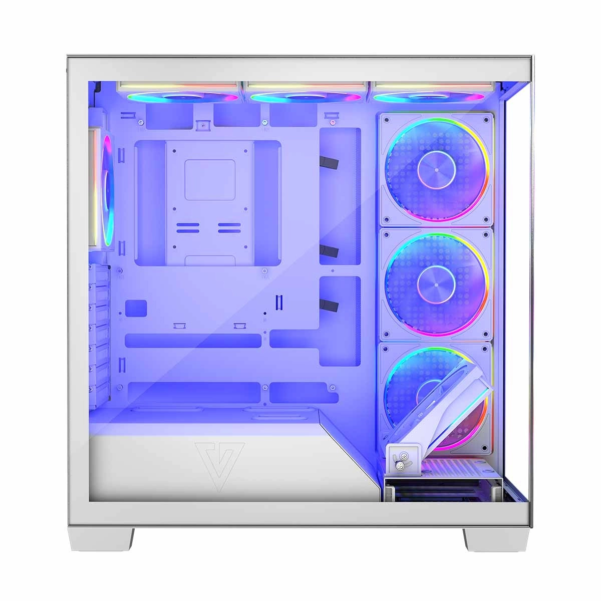 Ključni element je učinkovit hlađeni sustav, koji osiguravaju tri ARGB ventilatora sa strane kućišta, tri na vrhu i dva straga. Dostupan je i poseban okvir za ventilator za izravno hlađenje grafičke kartice.