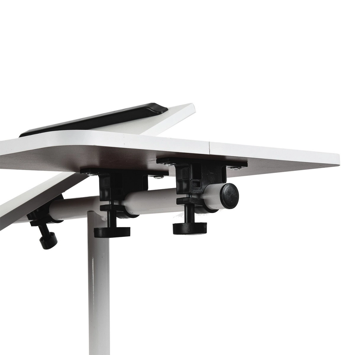Prijenosni stol za prijenosno računalo Maclean kombinira ergonomiju i mobilnost. S visinskom regulacijom od 59 do 89 cm prilagođava se vašim potrebama i radnim preferencijama. Idealan je za svako okruženje, bilo kućno ili profesionalno. Podesivi kut dvostrukih ploča povećava udobnost i olakšava organizaciju vašeg radnog prostora.