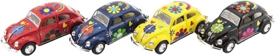 Preselite se u zlatno doba cesta s detaljno izrađenim modelom KINSMART VOLKSWAGEN Beetle. Ovaj metalni model mjerene duljine 13 cm impresionira kvalitetnom izradom, šarenim cvjetnim motivima i realističnim detaljima koji će razveseliti djecu i odrasle kolekcionare.