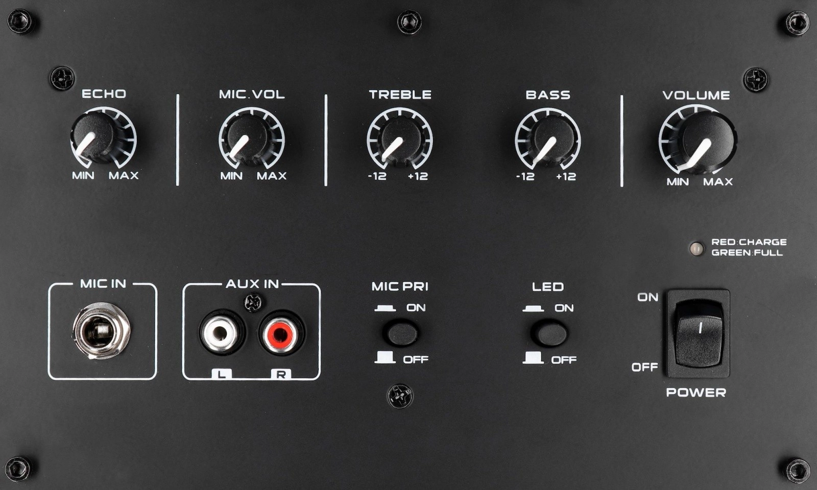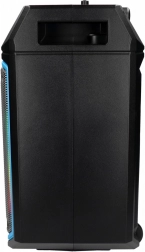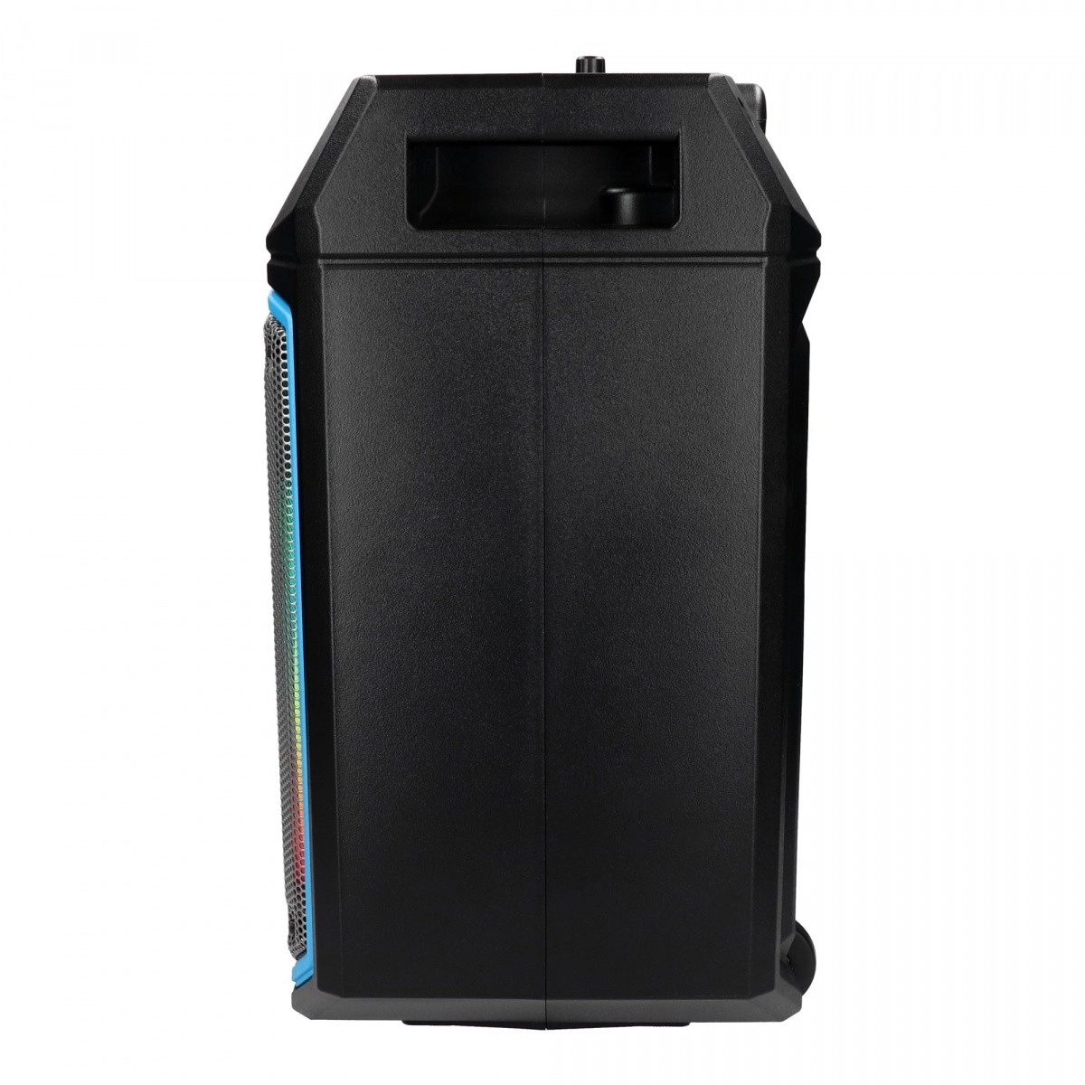 Za udobnost se brinu daljinsko upravljanje i teleskopske ručke s kotačićima za lako premještanje. Ugrađeni mikrofon za karaoke i višebojni LED panel pružaju pravú atmosferu vašoj zabavi.