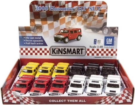 Realistični model Hummer H2 SUV duljine 12 cm donosi kvalitetnu izradu, metalnu karoseriju (die-cast) i izdržljive plastične detalje. Zahvaljujući povratnom pogonu dovoljno je povući autić unatrag i pustiti – odmah kreće naprijed. U mnogim izvedbama dodatno oduševljava otvarajućim vratima, koja pojačavaju doživljaj igre i izlaganja u kolekciji.