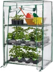 Ovaj mini staklenik savršen je za uporabu na balkonu, terasi ili u malom vrtu. Opremljen je s tri praktične police i prednjim zatvaranjem na patentni zatvarač, koje se može lako smotati za jednostavan pristup iznutra. Zahvaljujući dimenzijama 46 x 24 x 80 cm, stabilan je, a ujedno štedi prostor.