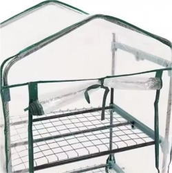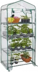 Staklenik je opremljen s četiri police: dvjema pune širine i dvjema polovičnim, što omogućuje slobodnu organizaciju prostora ovisno o visini biljaka. Praktična vrata s patentnim zatvaračem omogućuju brz i udoban pristup unutrašnjosti.