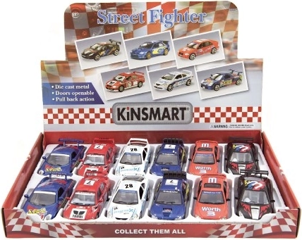 Otkrijte svijet brzine i zabave s mini trkaćim autićima KINSMART Street Fighter. Metalna karoserija s plastičnim dodacima osigurava izdržljivost i ujedno preciznu obradu detalja, poput trkaćih naljepnica, spojlera i sportskih naplataka.