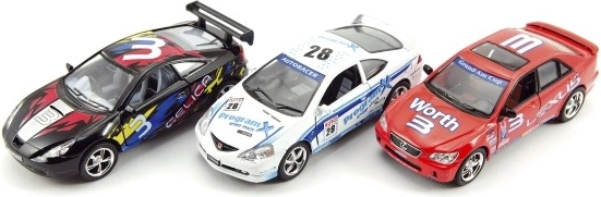 Kombinacija metala i plastike osigurava izdržljivost i vjeran izgled. Trkaće naljepnice, spojleri i brojevi čine autiće atraktivnim kolekcionarskim komadima.