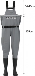 TRIZAND hlače do prsa idealan su izbor za ribare koji traže izdržljivost, udobnost i sigurnost u jednom. Ove čizme/hlace za vodu od visokokvalitetnog PVC-a ne propuštaju vodu te su istodobno udobne za nošenje zahvaljujući podesivim naramenicama i fleksibilnom kroju.