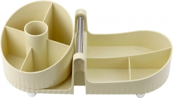 Ovaj organizator uključuje praktičnu ručku za lako prenošenje. Štedi prostor, a istovremeno prima sve potrebne kozmetičke ili uredske potrepštine. Njegov moderan i minimalistički dizajn uklapa se u razne interijere – od kozmetičkog stolića do radnog stola u kućnom uredu.
