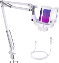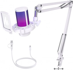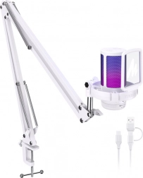 Mikrofon Maono opremljen je robusnom podesivom rukom koja omogućuje udobno postavljanje na stolu. USB povezivanje osigurava kompatibilnost sa sustavima Windows, macOS i konzolama PlayStation 4 i 5, dok jednostavno upravljanje i moderan dizajn obogaćen RGB osvjetljenjem povećavaju privlačnost. Proizvod također nudi funkciju brzog isključivanja zvuka, što je idealno za trenutno sprječavanje neželjenih zvukova tijekom snimanja. U kompletu se nalazi pop filter i fleksibilna ruka koji pomažu u stvaranju profesionalnog okruženja za snimanje.