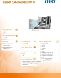 Matična ploča B850M Gaming Plus Wifi savršen je izbor za moderne igrače. Nudi ne samo podršku za najnovije procesore AMD Ryzen serije 9000, već i DDR5 memoriju u dvokanalnom načinu rada s brzinama do 8200+ MT/s (OC). Zahvaljujući izravnom naponskom sustavu 8+2+1 te inovativnim tehnologijama Core Boost i Memory Boost pruža vrhunske performanse.