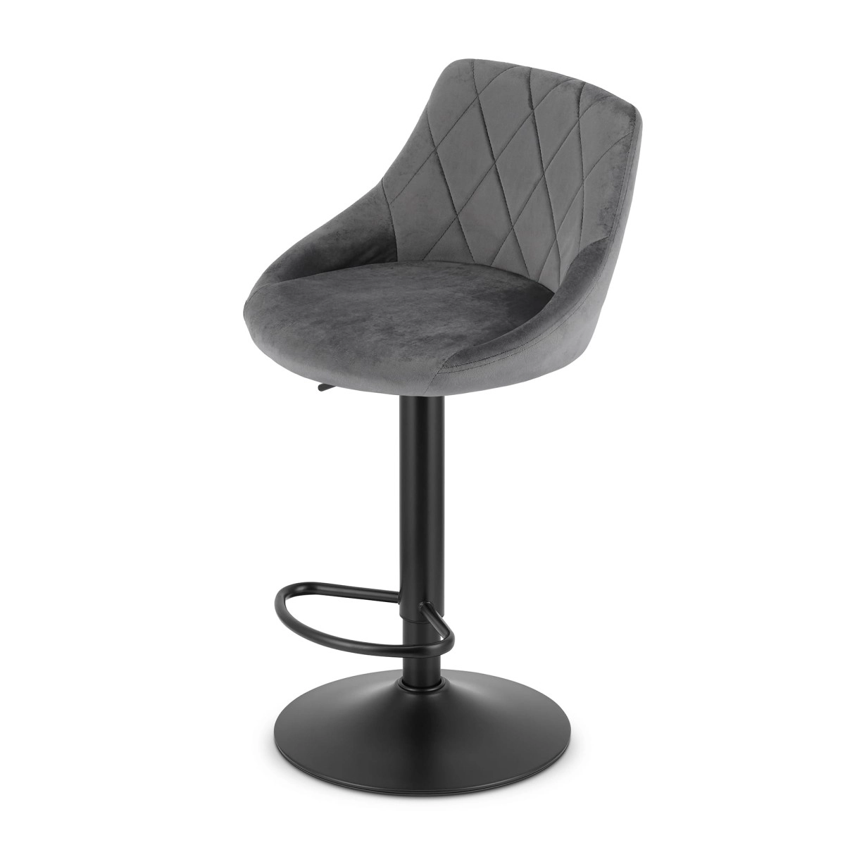 Osvježite svoj interijer ovom okretnom barskom stolicom s svilenkastim sivim baršunastim presvlakama. Zahvaljujući izdržljivoj metalnoj konstrukciji čvrsta je i stabilna, stoga je idealna za dom i komercijalne prostore. Podesiva visina omogućuje lako prilagođavanje prema potrebi pomoću pneumatskog podizača, što je čini praktičnim rješenjem za svaki prostor.