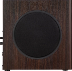Izdržljiva konstrukcija od 18 mm MDF-a minimizira rezonancije, dok smeđa drvena završna obrada osigurava estetski izgled. RCA ulazi i izlazi pružaju široku kompatibilnost s ostalim uređajima.