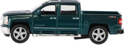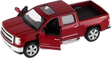 Uživajte u detaljnoj replici kultnog pick-upa CHEVROLET Silverado 2014. Karoserija od metala s plastičnim dodacima, precizan lak i vjerne proporcije oduševit će male vozače i kolekcionare. Autić ima otvarajuća vrata, pa možete razgledati razrađenu unutrašnjost.