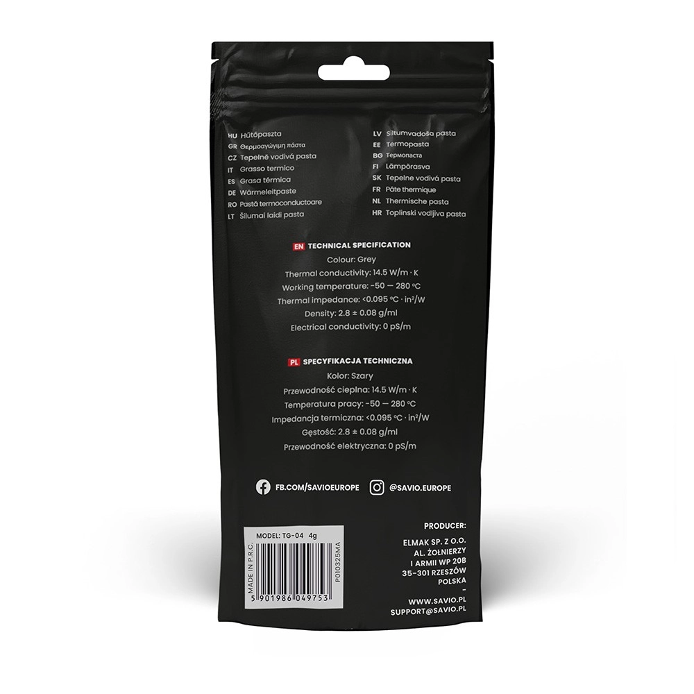 Termovodljiva pasta Savio Glacier TG-04 dizajnirana je za jednostavnu primjenu i osiguranje učinkovitog prijenosa topline: