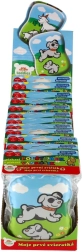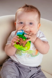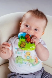 Predstavljamo mekani piskajući jastučić „Moje prve životinjice“, osmišljen za one najmlađe. Pritiskom ispušta nježan piskajući zvuk koji zabavlja djecu i istodobno razvija njihovo slušno opažanje i finu motoriku. Zahvaljujući kompaktnim dimenzijama savršeno stane u kolica, autosjedalicu i krevetić.