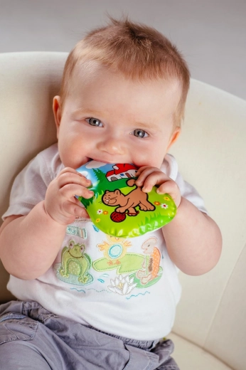 Presladak piskajući jastučić za bebe s motivima životinjica potiče prvo otkrivanje svijeta. Pogodan od 0 mjeseci, bez ftalata i uredno certificiran za sigurnu igru i smirivanje.