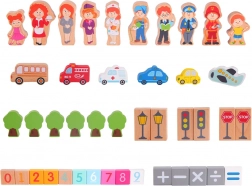 • 10 drvenih figurica likova, 6 stabala i 6 vozila.