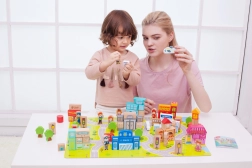 Izgradite vlastiti grad s ovim drvenim građevnim setom koji sadrži 120 dijelova marke Classic World. Zabava i edukacija spajaju se kroz igru s obojenim blokovima, figurama i vozilima, poučavajući djecu o gradskim funkcijama i zanimanjima.