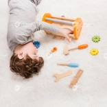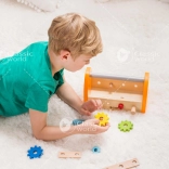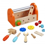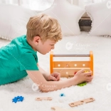 Ovaj drveni set alata razveselit će sve male majstore koji vole pomagati kod kuće. U čvrstoj drvenoj kutiji nalazi se sve potrebno za sigurno i zabavno „popravljanje“. Igračka razvija koordinaciju oko–ruka, potiče kreativnost i uči djecu osnovama obrtničkih vještina.