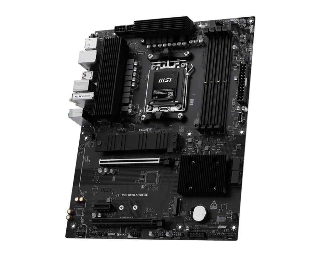 Hlađenje je osigurano pomoću Frozr Guard – visokoučinkovitih MOSFET termalnih podloga 7 W/mK i pokrova M.2 Shield Frozr, pa SSD održava konzistentne brzine. Za jednostavnu montažu služe EZ M.2 Clip II, EZ PCIe Clip II i EZ Antenna. Mrežna oprema uključuje 2.5G LAN i Wi‑Fi 6E za brzo, stabilno i sigurno povezivanje, dok Audio Boost pruža čist, prostorni zvuk studijske kvalitete.