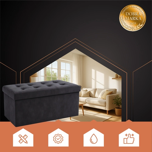 Zahvaljujući volumenu od 110 litara sakrit ćete sve od deka do sezonskih dodataka. Konstrukcija s MDF ojačanjem je stabilna, a puf možete u nekoliko sekundi sklopiti ravno i uštedjeti prostor. Neutralna siva boja uklapa se u moderne i klasične interijere.