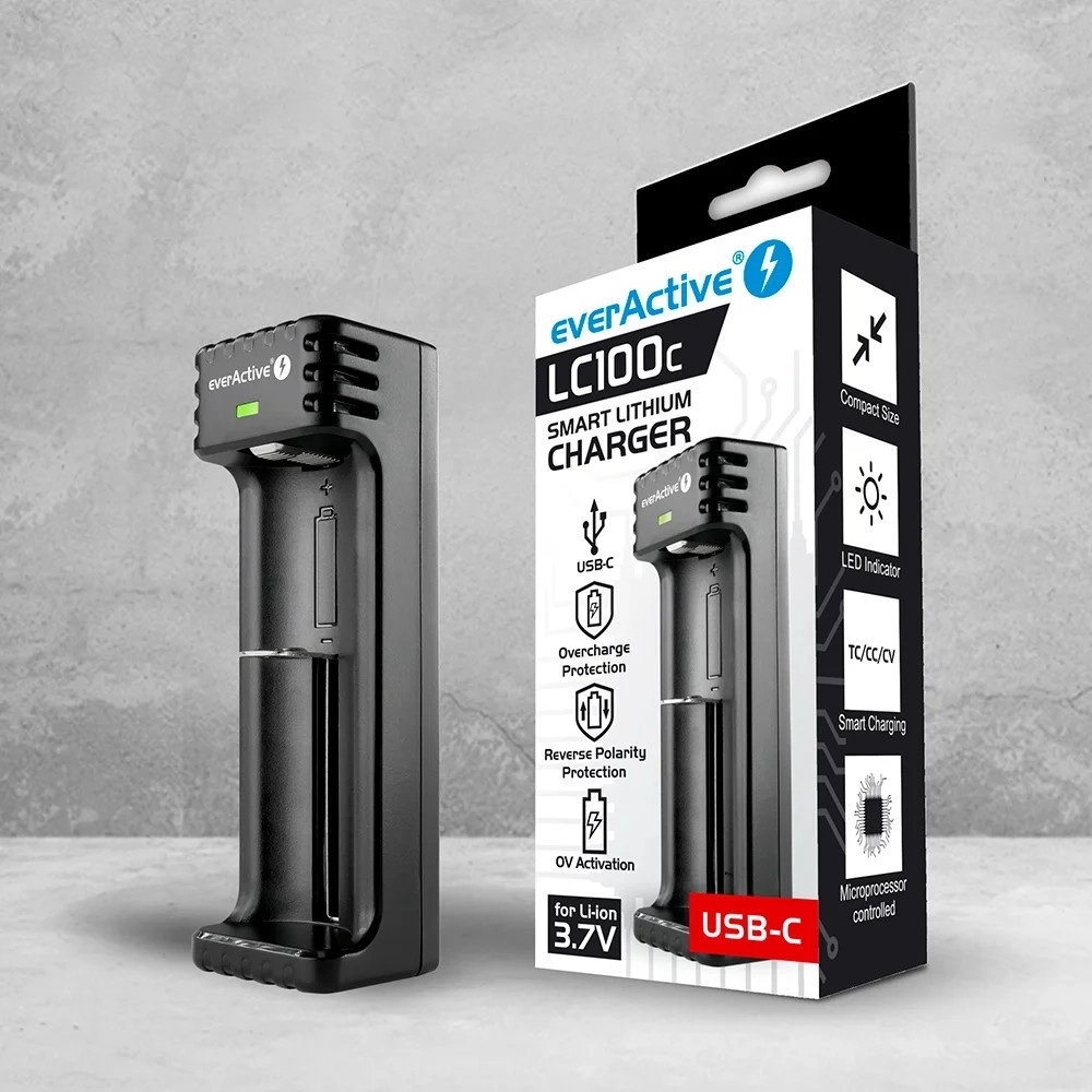 Punjač EverActive LC100C pouzdan je i jednostavan uređaj za punjenje jedne baterije. Opremljen je mikroprocesorom za upravljanje procesom punjenja i nudi visoku struju punjenja do 1000 mA.