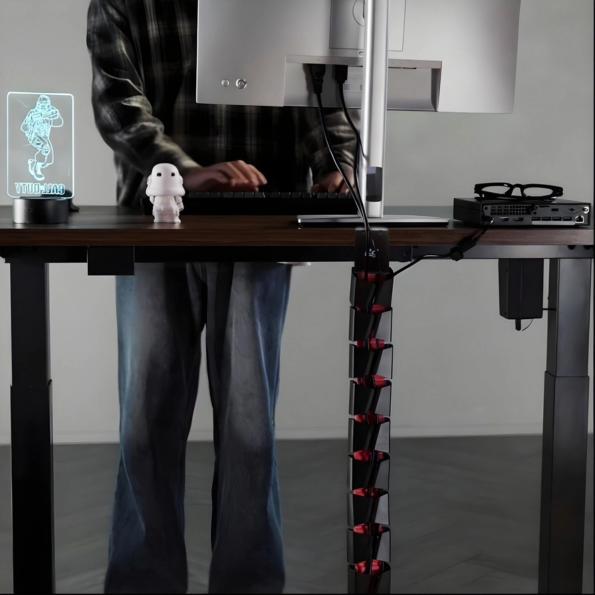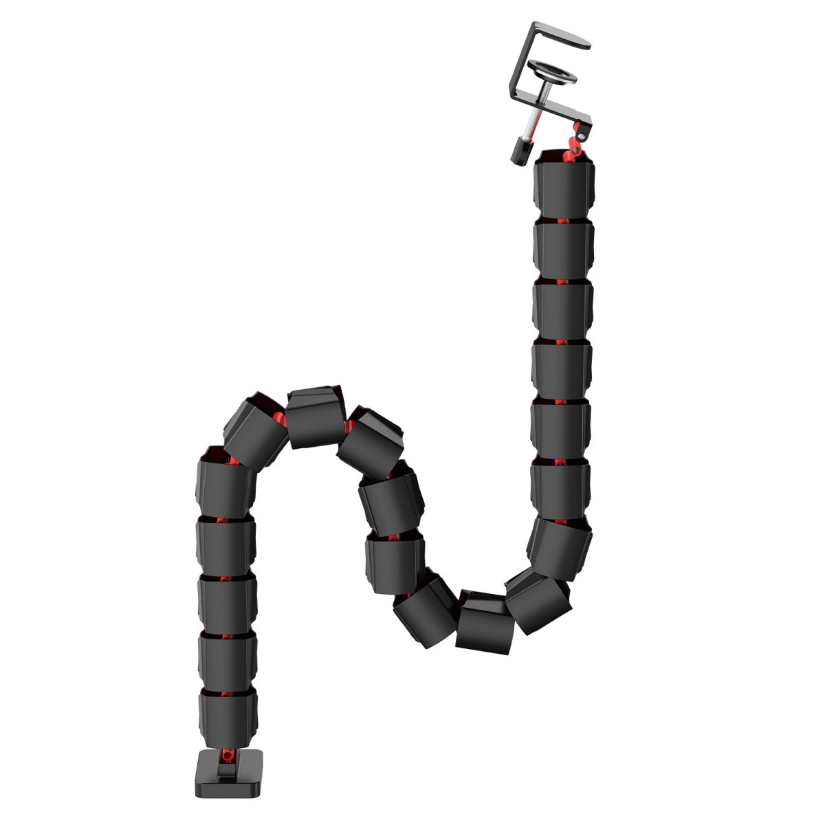 Crni segmenti s crvenim zglobovima savršeno se uklapaju u gamerski stil i naglašavaju karakter vašeg radnog mjesta. Zahvaljujući duljini 1345 mm idealan je i za veće stolove, a po potrebi duljinu možete skratiti uklanjanjem pojedinih modula. Ovaj organizator ne samo da poboljšava izgled vašeg setupa, već i olakšava upravljanje kabelima, čime se smanjuje rizik od njihova oštećenja. Mali detalj koji čini veliku razliku, osobito ako pazite na red i stil.