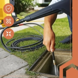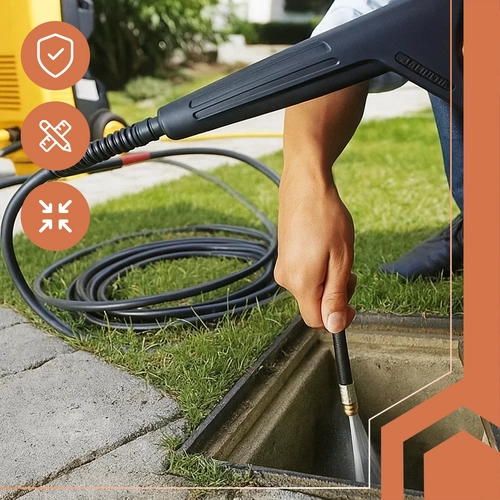 - Fleksibilno crijevo duljine 15 m lako uklanja začepljenja u cijevima i nečistoće s pločica