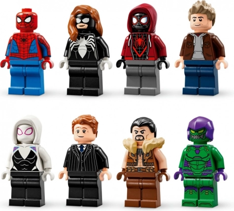 U pakiranju se nalazi 8 kolekcionarskih minifigurica – Spider-Man, Spider-Woman, Miles Morales (s motociklom), Eddie Brock, Ghost-Spider, Norman Osborn, Kraven lovac i Zeleni Goblin (s letačem). Zahvaljujući modularnom rješenju set se lako preuređuje kako biste stvorili vlastite akcijske ulice za igru i izlaganje.