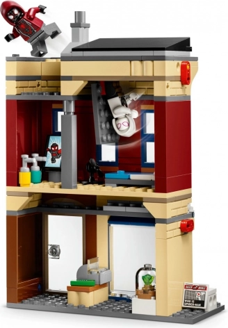 Ova detaljna gradska scena sastoji se od tri povezive zgrade: stana Milesa Moralesa iznad zlatarnice, tornja Oscorp i Venomova stana iznad trgovine mješovitom robom. Svaki modul skriva tematsku opremu i dodatke koji potiču kreativno pripovijedanje, a prozirni elementi omogućuju likovima dinamične poze kao izravno iz stripa.