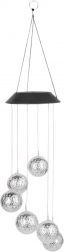 Ova lampa sastoji se od šest perforiranih kugli obješenih na tankim užadima, koje nježno svijetle i reflektiraju svjetlo ugrađenih RGB LED dioda. Zahvaljujući solarnom napajanju nisu potrebni kablovi ni baterije – ekološko je i praktično rješenje. Ugrađeni senzor sumraka automatski uključuje svjetlo čim padne mrak.